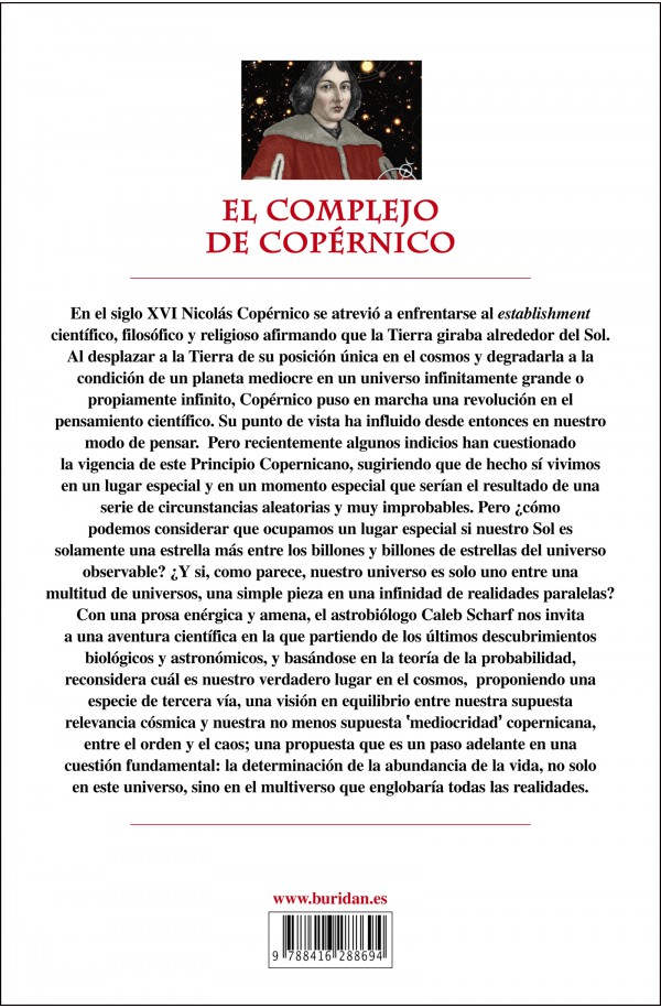 En el siglo XVI Nicolás Copérnico se atrevió a enfrentarse al establishment científico, filosófico y religioso afirmando que la Tierra giraba alrededor del Sol. Al desplazar a la Tierra de su posición única en el cosmos y degradarla a la condición de un planeta mediocre en un universo infinitamente grande o propiamente infinito, Copérnico puso en marcha una revolución en el pensamiento científico. Su punto de vista ha influido desde entonces en nuestro modo de pensar. Pero recientemente algunos indicios han cuestionado la vigencia de este Principio Copernicano, sugiriendo que de hecho sí vivimos en un lugar especial y en un momento especial que serían el resultado de una serie de circunstancias aleatorias y muy improbables. Pero ¿cómo podemos considerar que ocupamos un lugar especial si nuestro Sol es solamente una estrella más entre los billones y billones de estrellas del universo observable? ¿Y si, como parece, nuestro universo es solo uno entre una multitud de universos, una simple pieza en una infinidad de realidades paralelas? Con una prosa enérgica y amena, el astrobiólogo Caleb Scharf nos invita a una aventura científica en la que partiendo de los últimos descubrimientos biológicos y astronómicos, y basándose en la teoría de la probabilidad, reconsidera cuál es nuestro verdadero lugar en el cosmos.